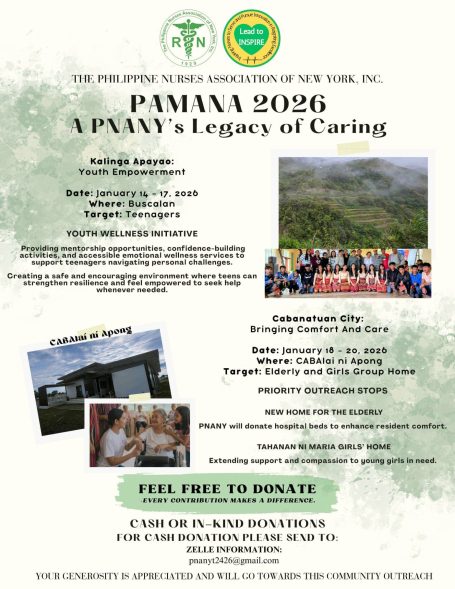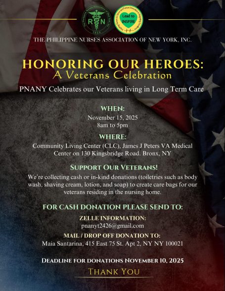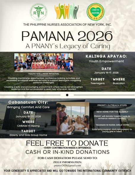 In addition to its legislative and policy work, PNA NY addresses immigration-related issues that impact internationally educated and immigrant nurses, recognizing the unique challenges they face in licensure, employment, and career advancement. The association is actively working on initiatives that support the professional development of both members and nonmembers, offering continuing education programs, leadership development opportunities, mentorship, and skills-building activities designed to strengthen the nursing workforce. PNA NY also prioritizes community outreach by partnering with Filipino-American communities to promote health education, wellness initiatives, and public service. Through nearly a century of advocacy, education, and service, PNA NY continues to elevate the nursing profession and improve the lives of nurses and the communities they serve.